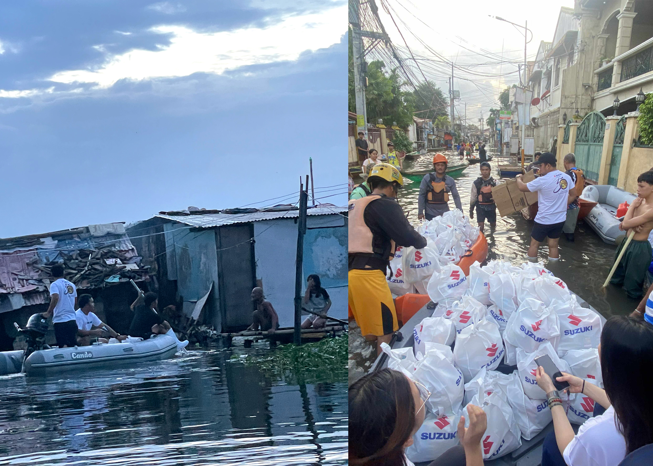 Moved by the urgency of the situation, Suzuki Philippines, through its Marine Department, immediately responded by extending assistance to the most heavily impacted areas. Working in close coordination with local government units and rescue teams, the company deployed specialized watercraft to aid in mobility and relief efforts. An inflatable boat with a 6HP Suzuki outboard motor was provided to Biñan, while a poly boat equipped with a 15HP motor was deployed to Sta. Rosa. These boats played a crucial role in reaching areas where traditional vehicles or even manual boats struggled to operate due to the depth of flooding and narrow passages
