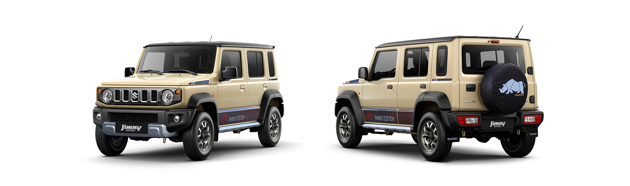 The Rhino Edition is more than just a vehicle; it’s a celebration of the Jimny’s legacy of strength, resilience, and unwavering capability. Inspired by the Rhino, this edition reflects Suzuki’s commitment to crafting vehicles that thrive in the wild while exuding confidence and sophistication in every detail. This edition also includes features like LED headlamps with washers for enhanced visibility, a 9-inch infotainment system with smartphone connectivity, and ample cargo space to accommodate the needs of every adventurer.